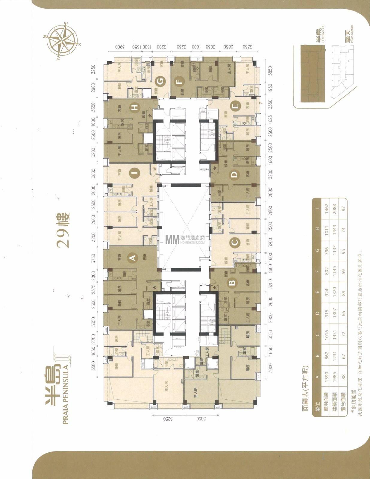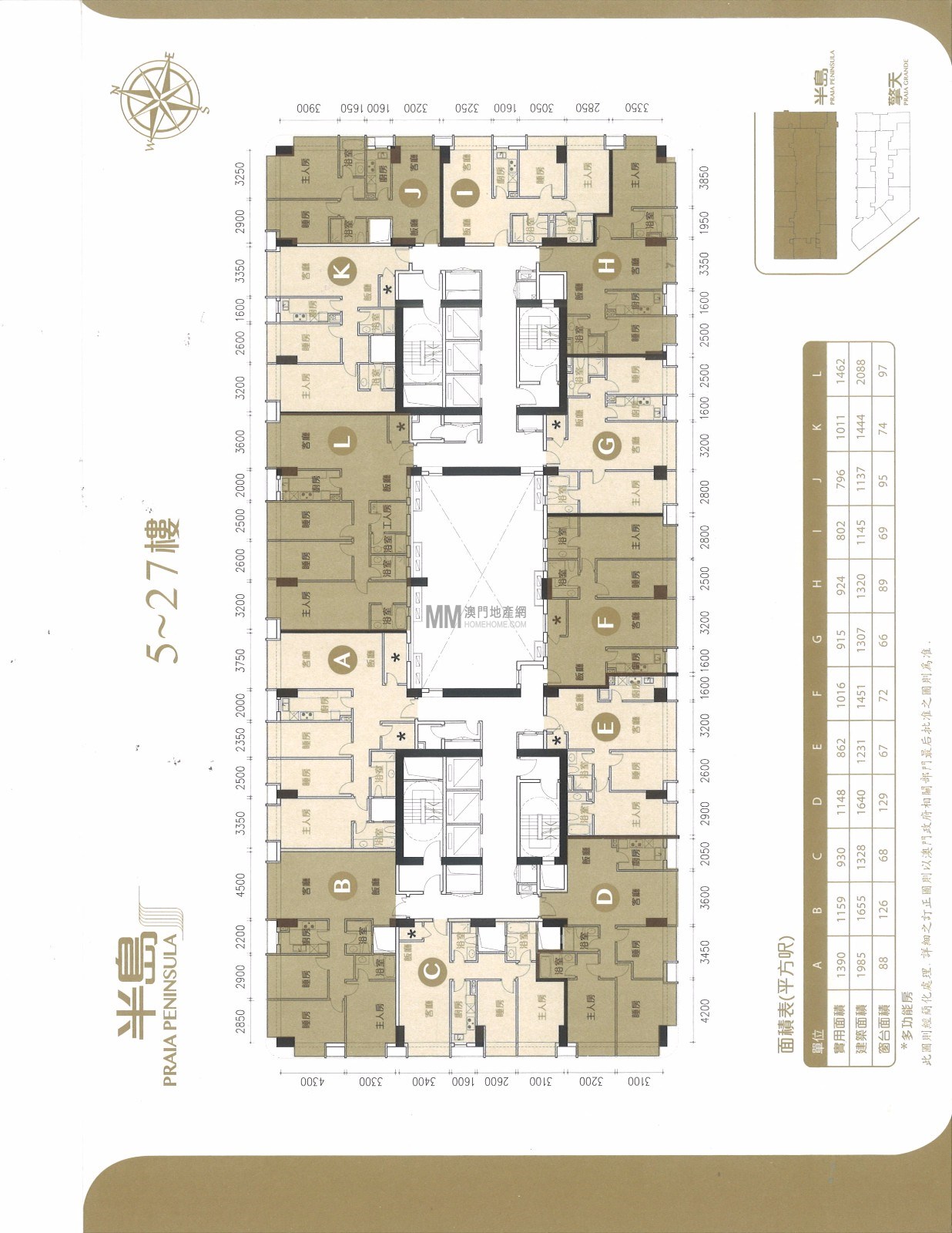 6、項目分為擎天和半島。半島1棟兩座住宅數目297個、私家車位元396個、電單車位218個,擎天1棟住宅樓目168個、私家車位187個合共359個,實用率:約75%。 7、車位比例超過1:1.3