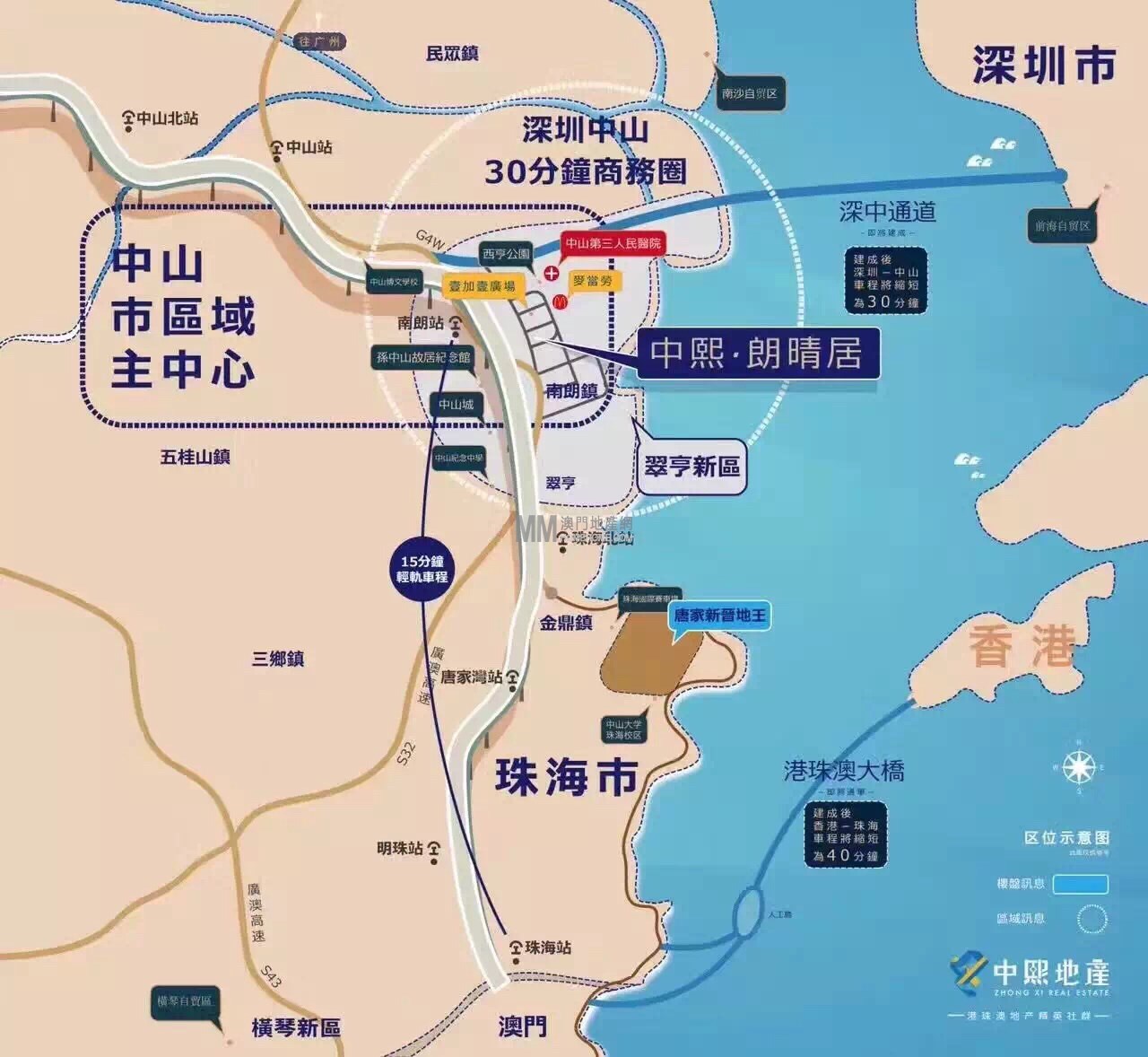 深中大橋落橋點,出發深圳20分鐘,南朗鎮中心位置,靠近珠海唐家地價29000地王10分鐘,鄰近中山最大翠亨高新開發區,街市食市娛樂配套成熟,輕軌物業,拱北出發20分鐘,附近樓價超過高品質樓盤雅居樂,山海郡賣到均價15000,現時朗晴居均價11600,低水位,40零萬一套物業管理公寓,一樓商鋪,2,3樓寫字樓,月租抵月供,現在認籌階段只需10萬即可定樓層單位,開盤價絕對不低於15000,即買即賺!