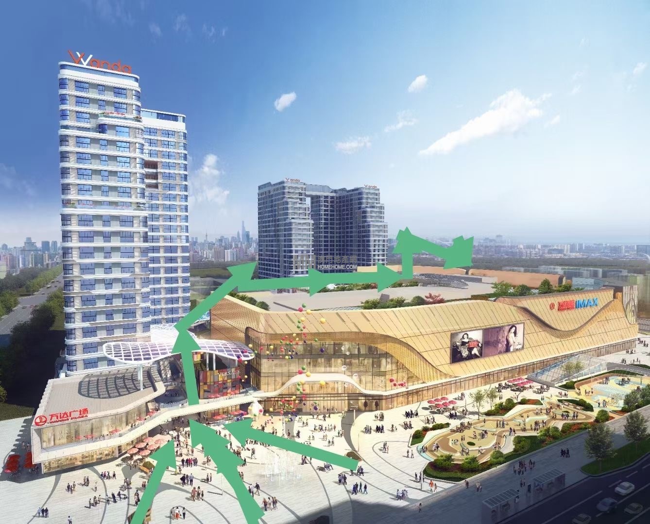 31 萬㎡大型綜合體、一站式消費。 項目集居住、購物、休閑、娛樂、社交等一站式消費,滿足商業綜合性需求,公