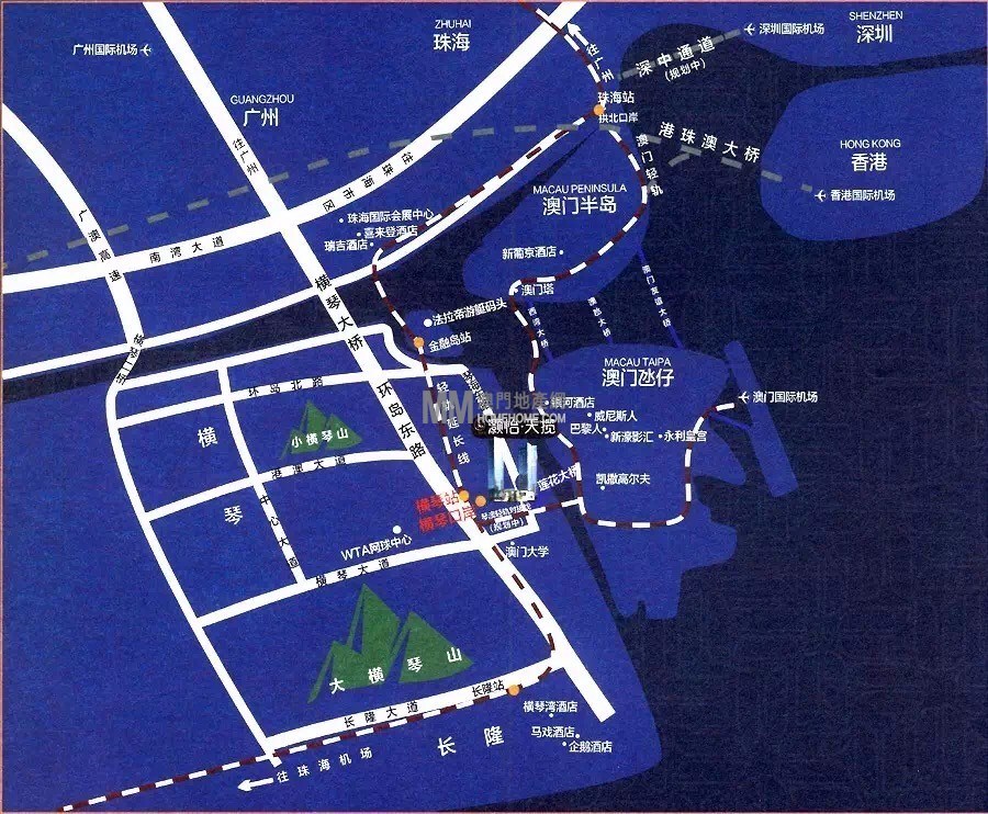 横琴口岸上盖+横琴、澳门双轻轨上盖+威尼斯、银河、新濠影汇+巴黎人景观+澳门
