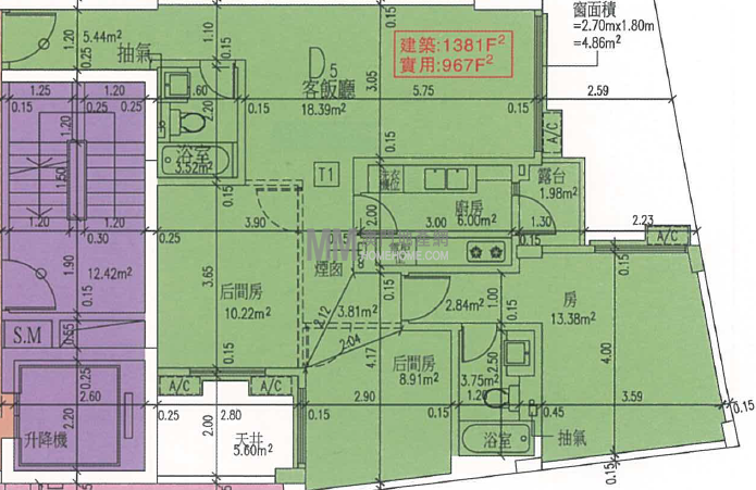 - 3 房 1 廳 | 1,381 呎